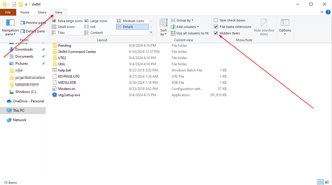 - Select the box labeled "Hidden items" to make hidden folders visible.