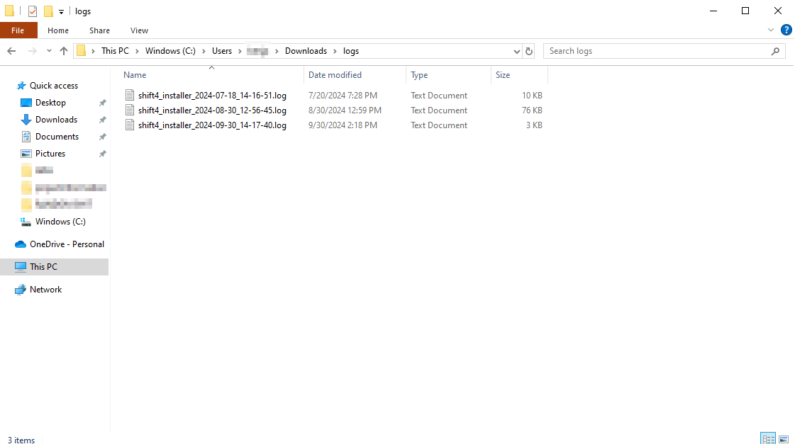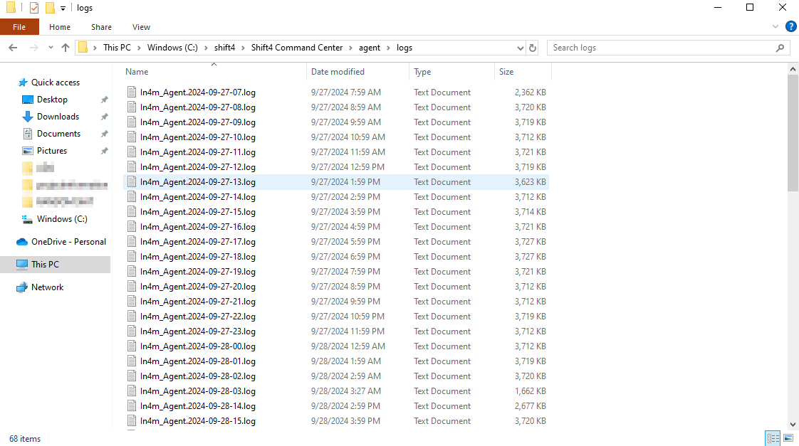 - Inside the logs folder, you should find log files with names similar to "shift4_installer_2024-10-03_15-17-30" (the date and time in the filename will vary).