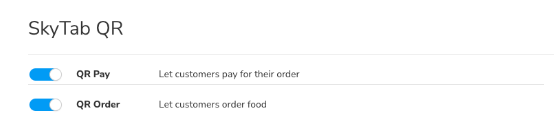 There is a new QR Order and QR Pay toggle. Existing merchants will have QR Pay enabled with the option to enable QR Order.