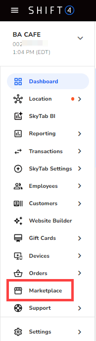 To enable SkyTab QR Pay, log into Lighthouse Business Manager and go to Marketplace > QR Pay.