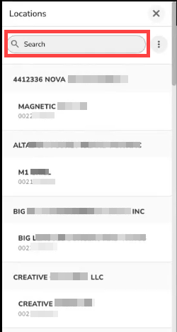 Here, you can see your locations grouped under your Shift4 serial and then organized alphabetically by Legal Name. Use the Search field to search for a particular location. This field supports partial matches and returns relevant results dynamically. Only the MID can be selected from the menu, as the Legal Name is for organization purposes.