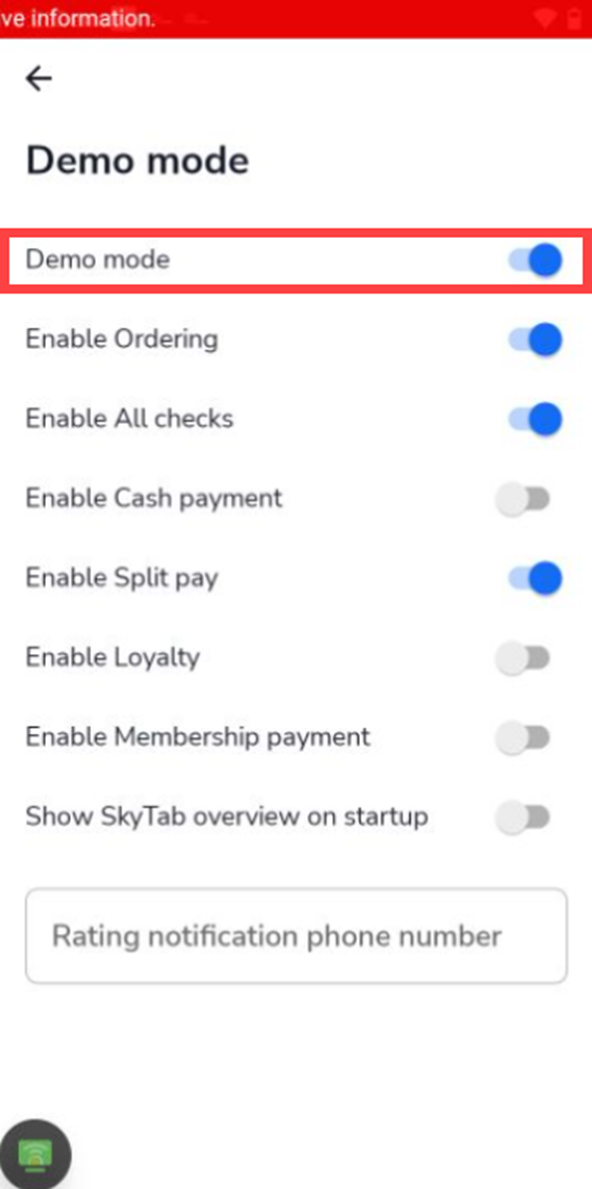 Description: Learn how to disable Demo mode from within the Shift4 application on the SkyTab device in the article below.