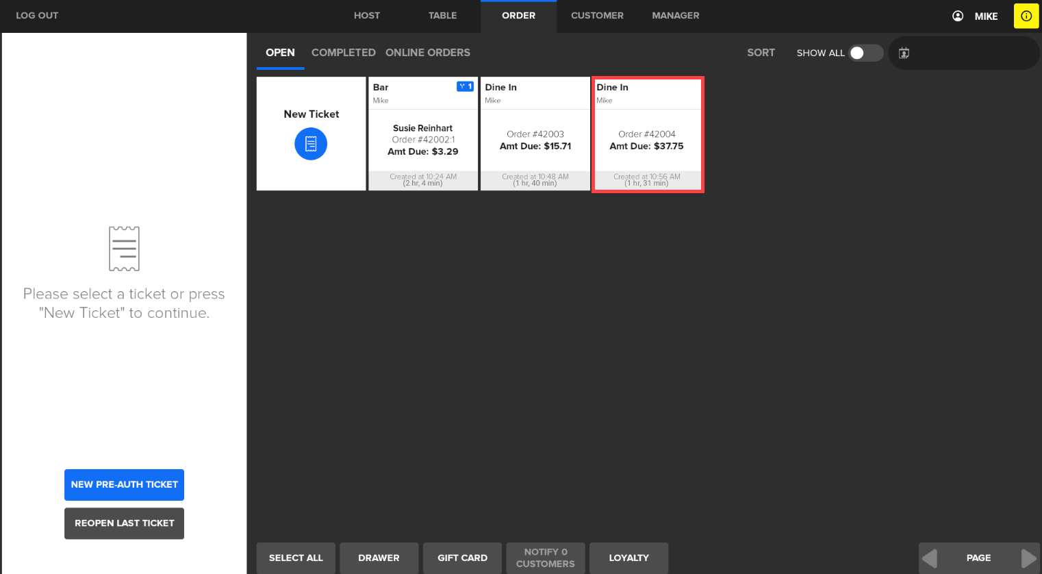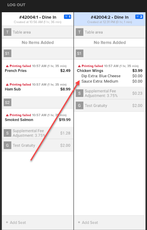 - Move items or guests to the new ticket:
