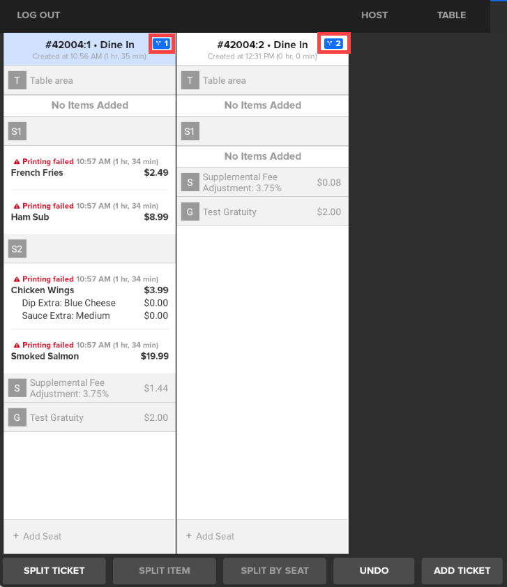 - You can only split one ticket at a time. Multiple tickets cannot be split simultaneously.