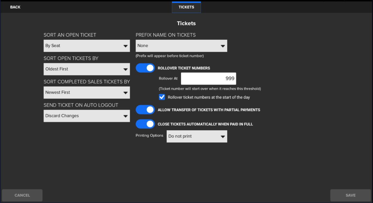 Ticket Settings on SkyTab POS