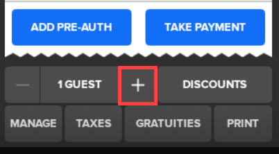 Adding a guest to an order allows Items to be grouped by who ordered them. Separating items makes it easier to serve a party and enables the simple splitting of the ticket at the end of the transaction if requested. You can also add or remove seats by using the '+' plus and '-' minus buttons next to the Guest button.