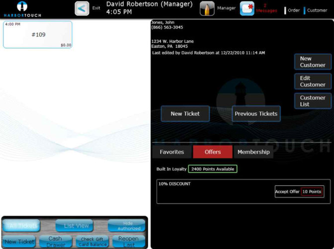 Each customer in the Harbortouch system may be enrolled in any available program. Favorites will be calculated for the customer as they return to the location on multiple visits. Sometimes no information about a guest may exist in the system other than their loyalty membership ID. In this case, a blank, or anonymous customer is created in the system, which can be filled with additional information at any time.