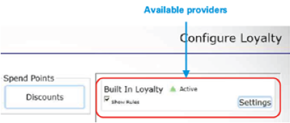 Note: Hospitality only supports the built-in provider, so there will only ever be one option listed here. Generally, you would never need to set this to inactive, you would just turn off Loyalty altogether.