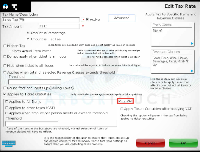 - In the bottom-right corner is the option called Is VAT. Enabling this separates this tax individually on the receipt as shown above.