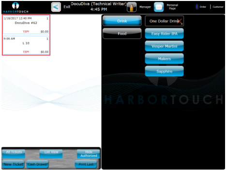 Once a ticket has been paid out using a credit card, you still need to enter a tip amount (if applicable), and until that tip amount is added, the ticket is located on the Order Entry screen as shown below: