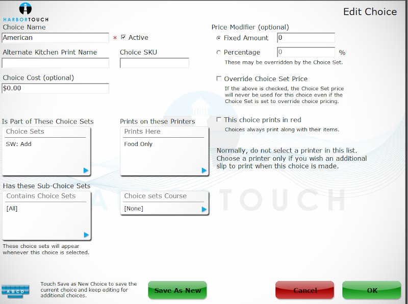 - Choice Cost: Enter what this choice costs you to allow the system to track expenses incurred by your restaurant for each choice.