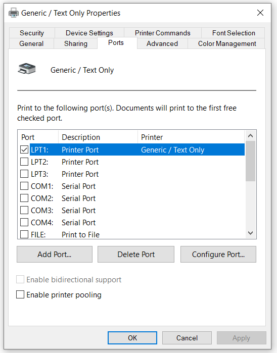 Description: Create the “Generic / Text Only” Windows printer that is used on our POS systems with the below steps.