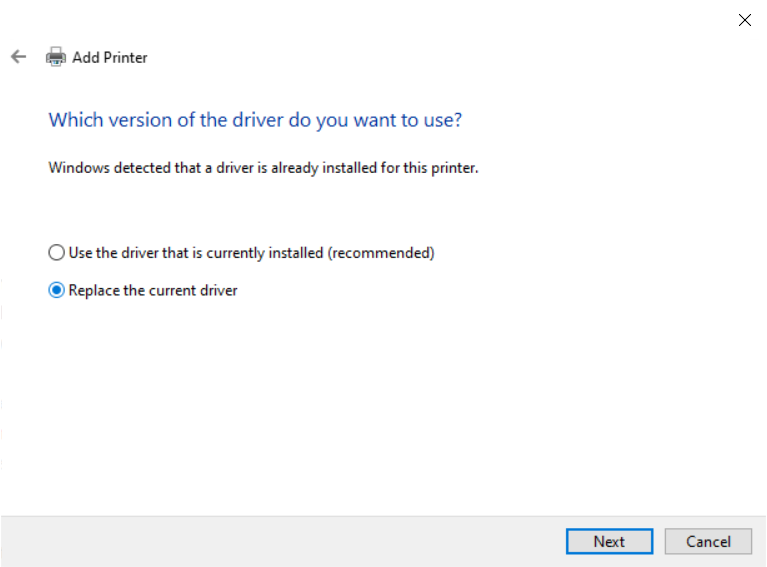 If you’re asked what version you want to use, select Replace the current driver, then select Next. - Enter the printer name and then select Next.