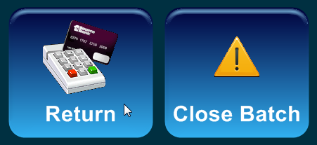 - The next screen is the Credit Cards screen. You can manually settle your batch here, and you can also perform a Credit Card Return / Refund.