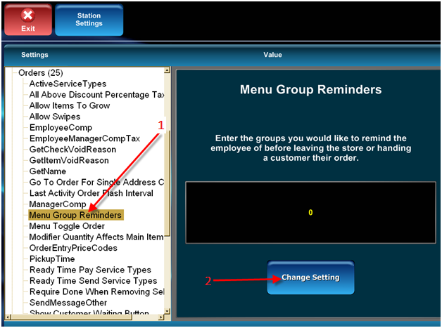 - Locate the Orders line item and expand it and locate the Menu Group Reminders sub-line.