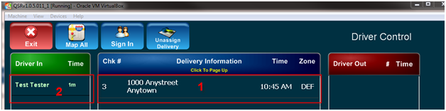 - Check your work by creating a ticket for delivery and adding the food groups you added to the Menu Group Reminders to that ticket. On the Driver Dispatch screen, select the ticket from the middle list and an available driver from the left to assign them.