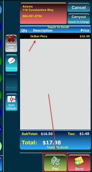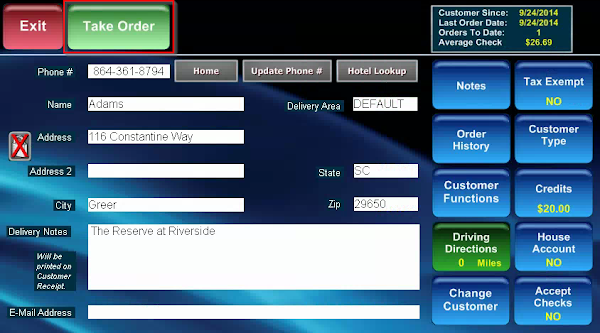 - Click Take Order on the customer information page to add the customer to the ticket.