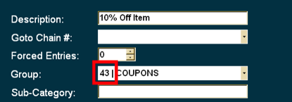 - In that setting, enter the Item Group Numbers separated by Pipes ( | ) that you want the system to prompt for a Manager's PIN when selected.