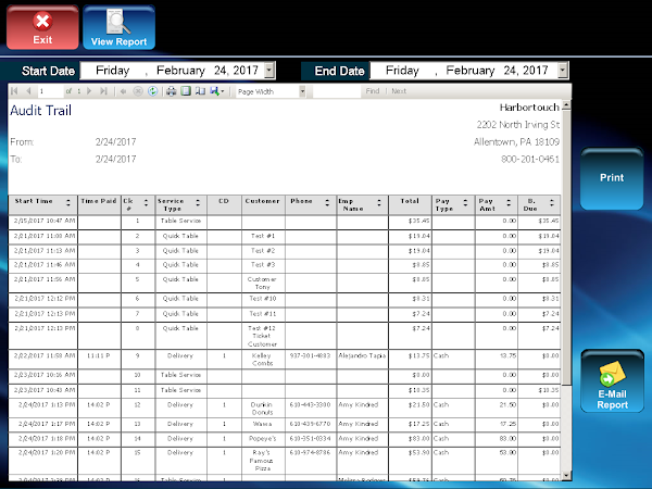 The View Audit button displays a list of checks and information such as service type, employee name, total, payment type, etc.