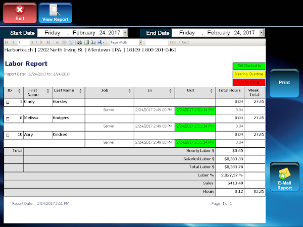 - You may email the Labor Report if you choose or print it on a full-size printer (if available).