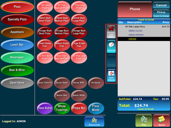 Once at least one item has been added to the ticket, select Remove Last Item to the left of the ticket on the Order Now! screen to delete the most recent addition to the ticket.