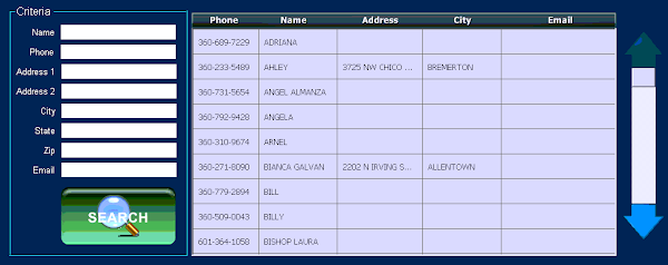 - Do not enter any information in the search Criteria screen, just press the Search button. The entire customer database will be loaded on the right side of the screen in the results window. You can now view a list of your customer database in its entirety.
