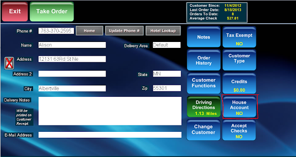 - Under the Customer Edit screen, select House Account to toggle this setting between NO and YES.