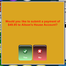 You may then pay off the House Account by whatever method of your choosing, just like taking payment for a regular sale. The House Account will remain outstanding until the full balance has been paid.