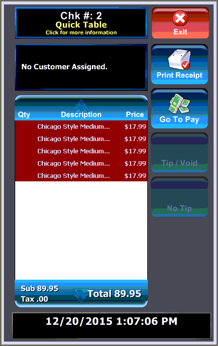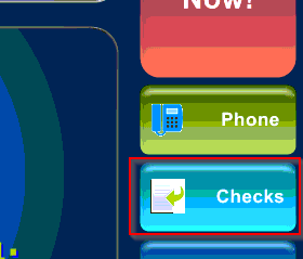 - Select the Checks button on the right side of either the Main screen or the Order entry screen to access the checks screen.