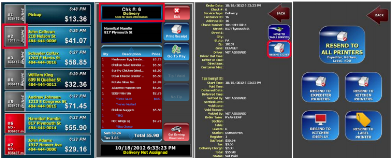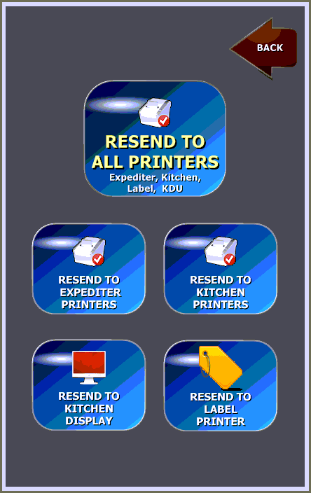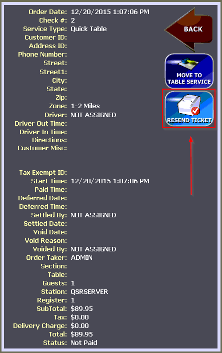 - From here, you can resend the ticket to the Kitchen or Expediter printers by selecting Resend Ticket on the right.