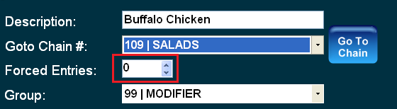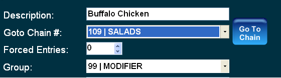 - Make the same change to the Goto Chain # on all Salads on the menu requiring a choice of dressing.