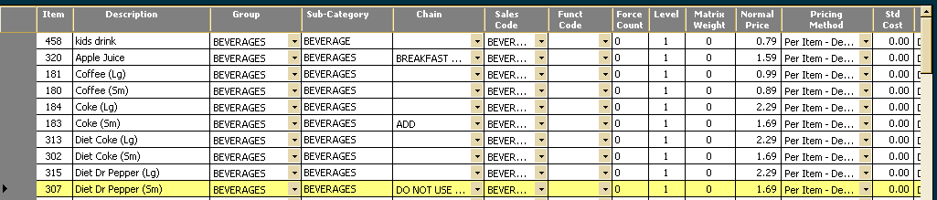- Select Menu Editing > Edit Menu Items to access the menu items spreadsheet.