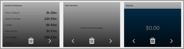 Displays a list of the top-selling items for the day at the time of login. This widget will display 5 items but can house up to 10 with the use of a show-all option.