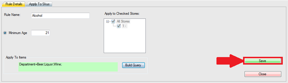 - Back on the Minimum Age Rule Editor, press Save to commit the Age Verification rule.