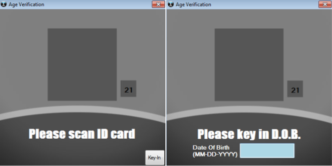 - You may swipe the driver’s license through the MSR, scan the 2D barcode on the back with our 2D Barcode Scanner, or press Key-In located in the bottom right corner to manually enter the date on the license.