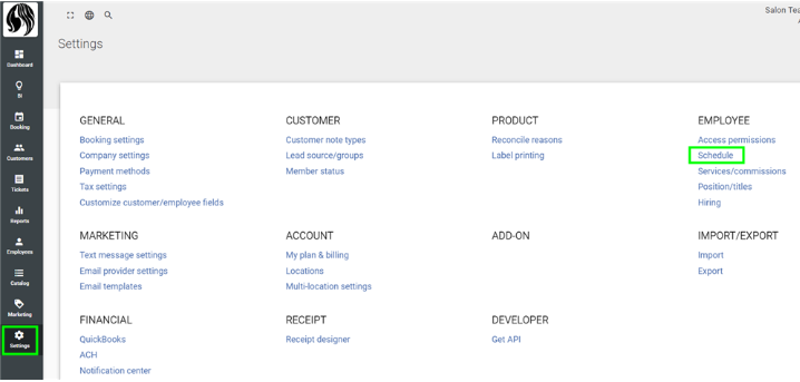 - From the Back Office, navigate to Settings and select Schedule under the Employee section.