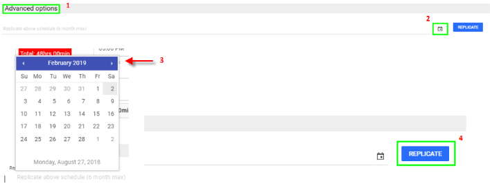- From the calendar that pops up, select the date that you want to replicate the schedule to.