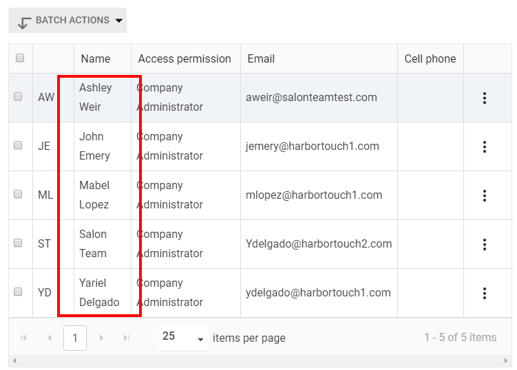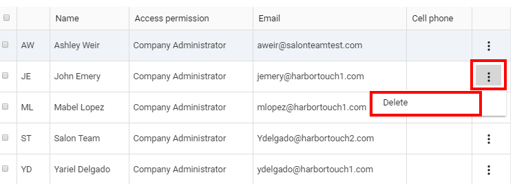 - To delete an Employee, select the menu button (three dots located to the right of the employee’s name), then choose Delete.