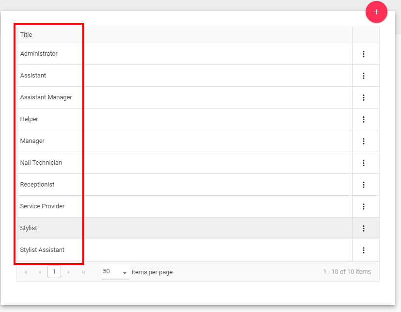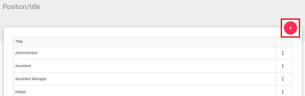 - To add a position/title, select the PLUS (+) button in the top right corner.