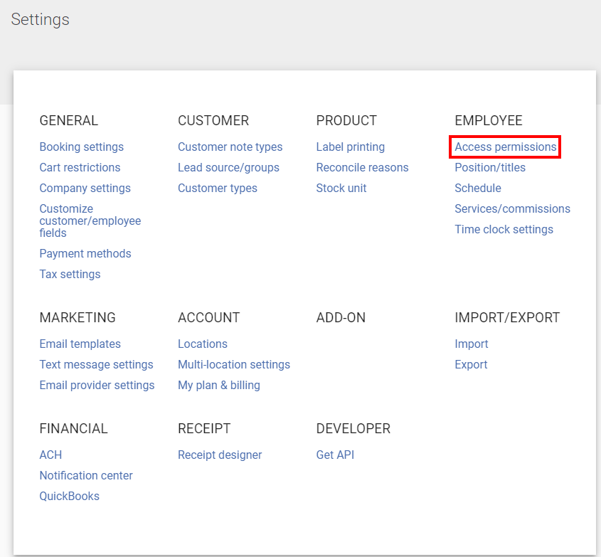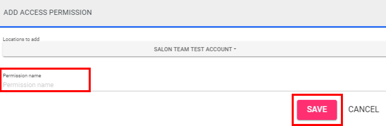 - Type the name of the permission category (i.e., manager, stylist, cashier) in the Permission Name field and press Save.