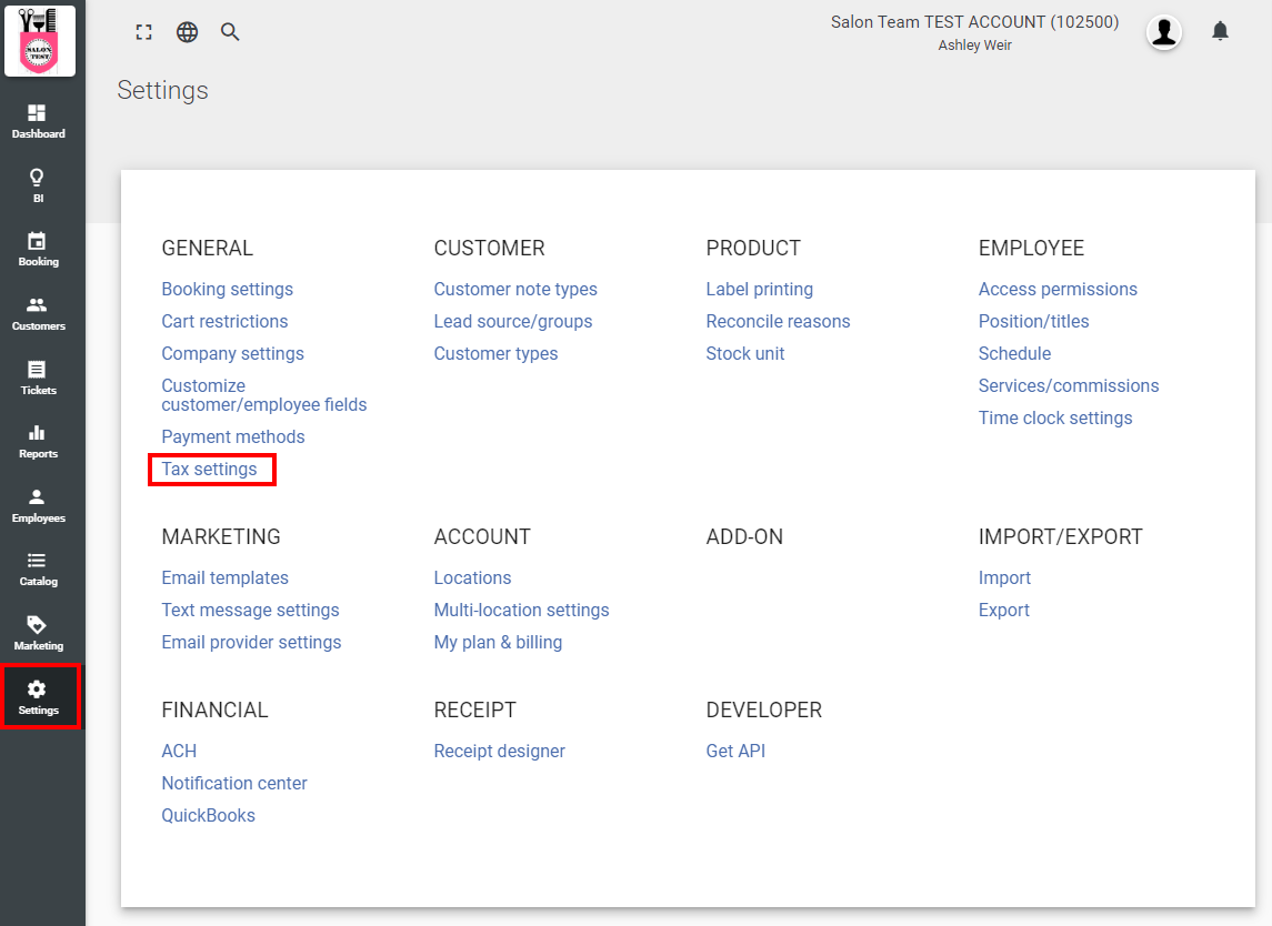 - From the Back Office or in Lighthouse, go to Settings > General > Tax Setting.