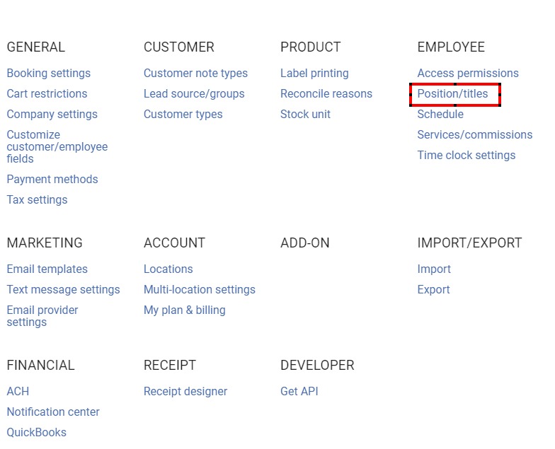 - From the Back Office or in Lighthouse, go to Settings > Positions/titles.