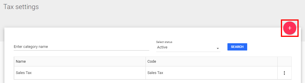 - Next, select the tax type you just created. When a new window pops up, continue by pressing the Plus (+) in the top right corner.