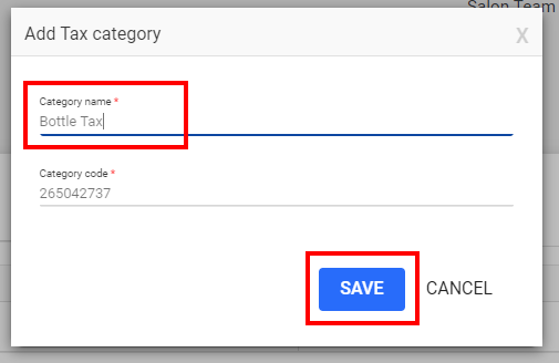- Enter the Tax Name and Tax percentage, and press Save once complete.