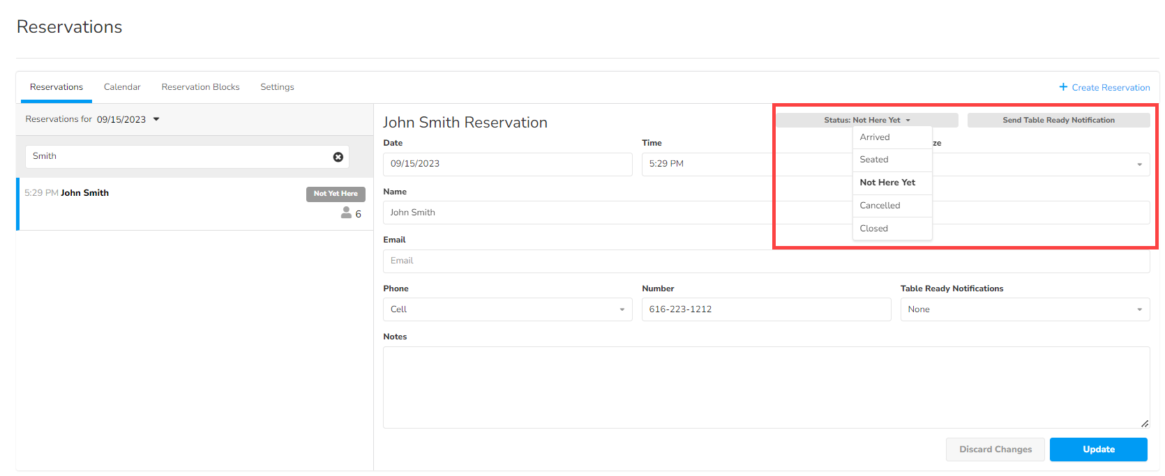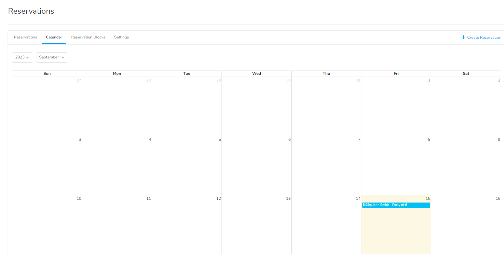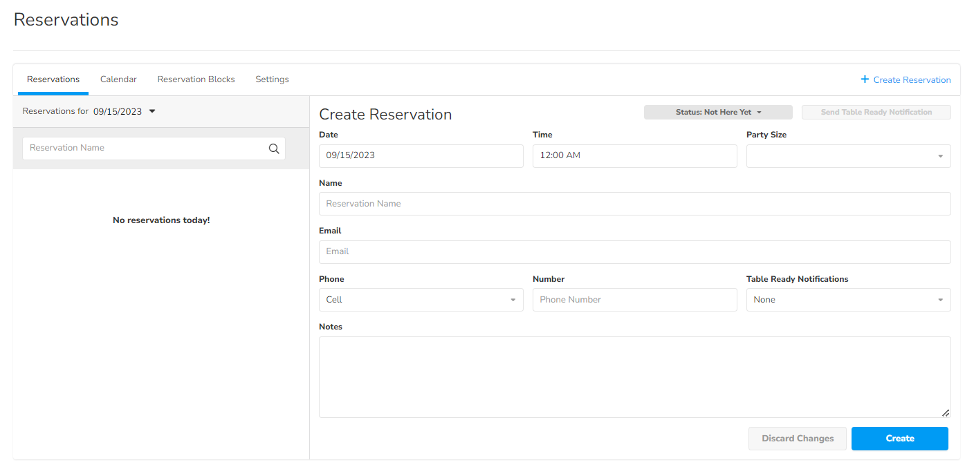 Reservations Overview on SkyTab Lighthouse Business Manager