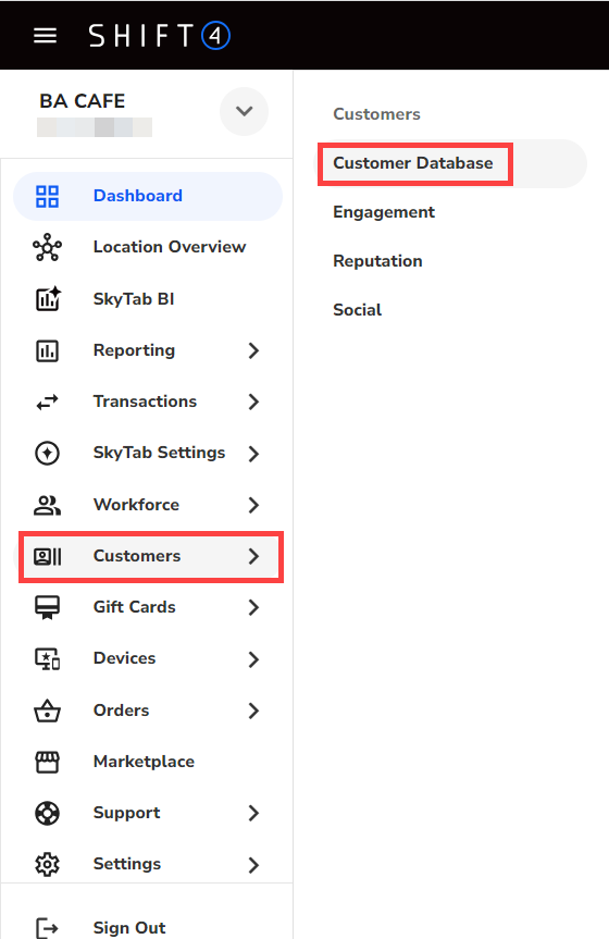 Select Customers > Customer Database from the left navigation menu.