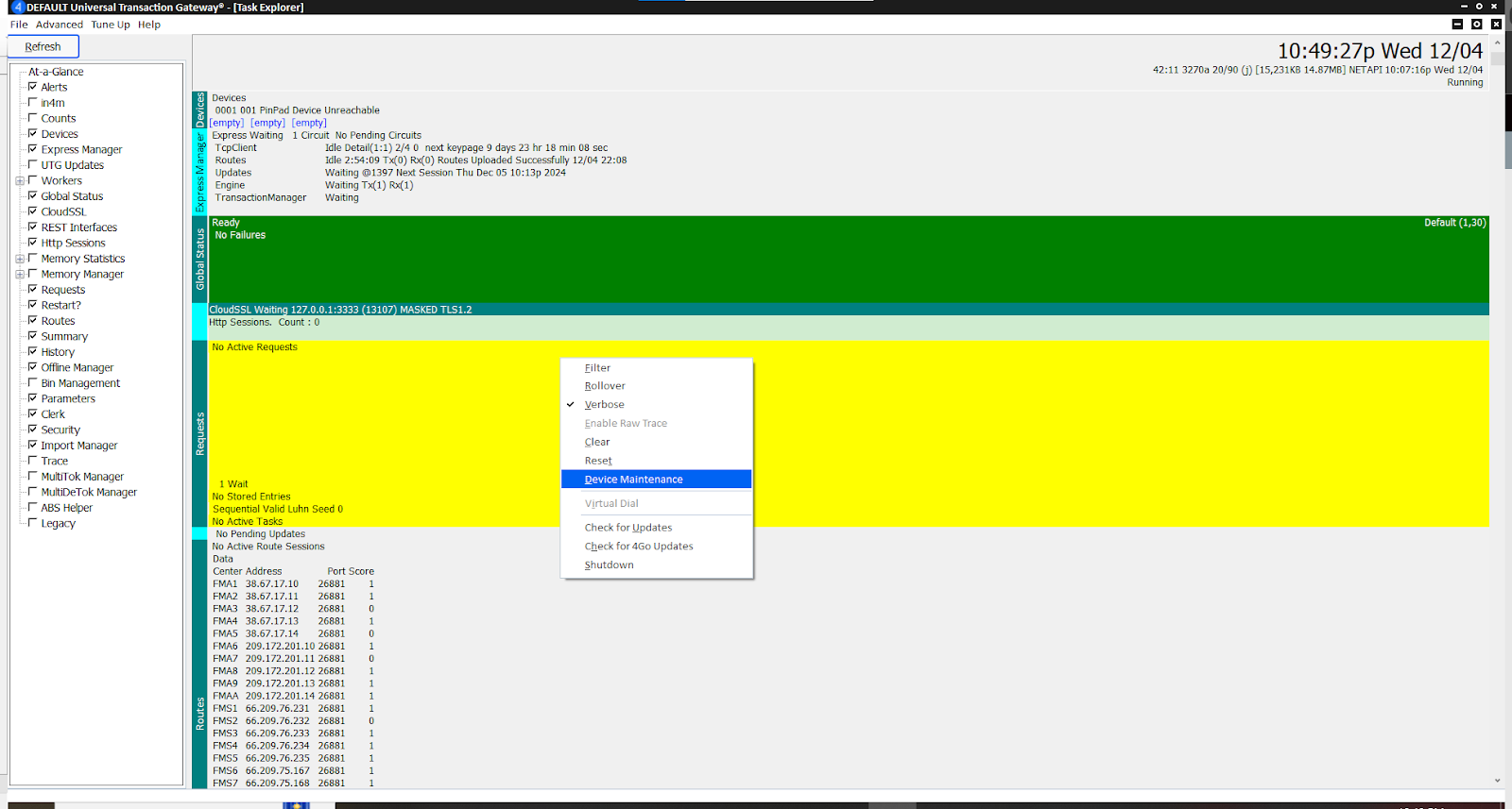- Bring up UTG Stand Alone. Right-click anywhere within the window. Select Device Maintenance.