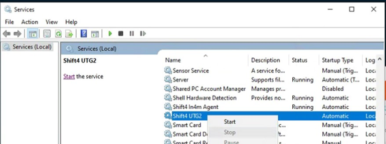 - Open Services and stop the Shift4 UTG2 service.