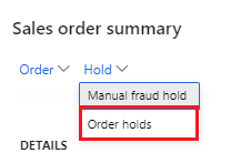- You may receive a pop-up advising that the order is on hold, if you do, select Close on the pop up, then expand the Hold dropdown and select on Order holds.