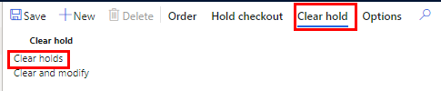 - This will bring up the Order hold screen, from the top of the screen, navigate to Clear hold and select Clear hold.